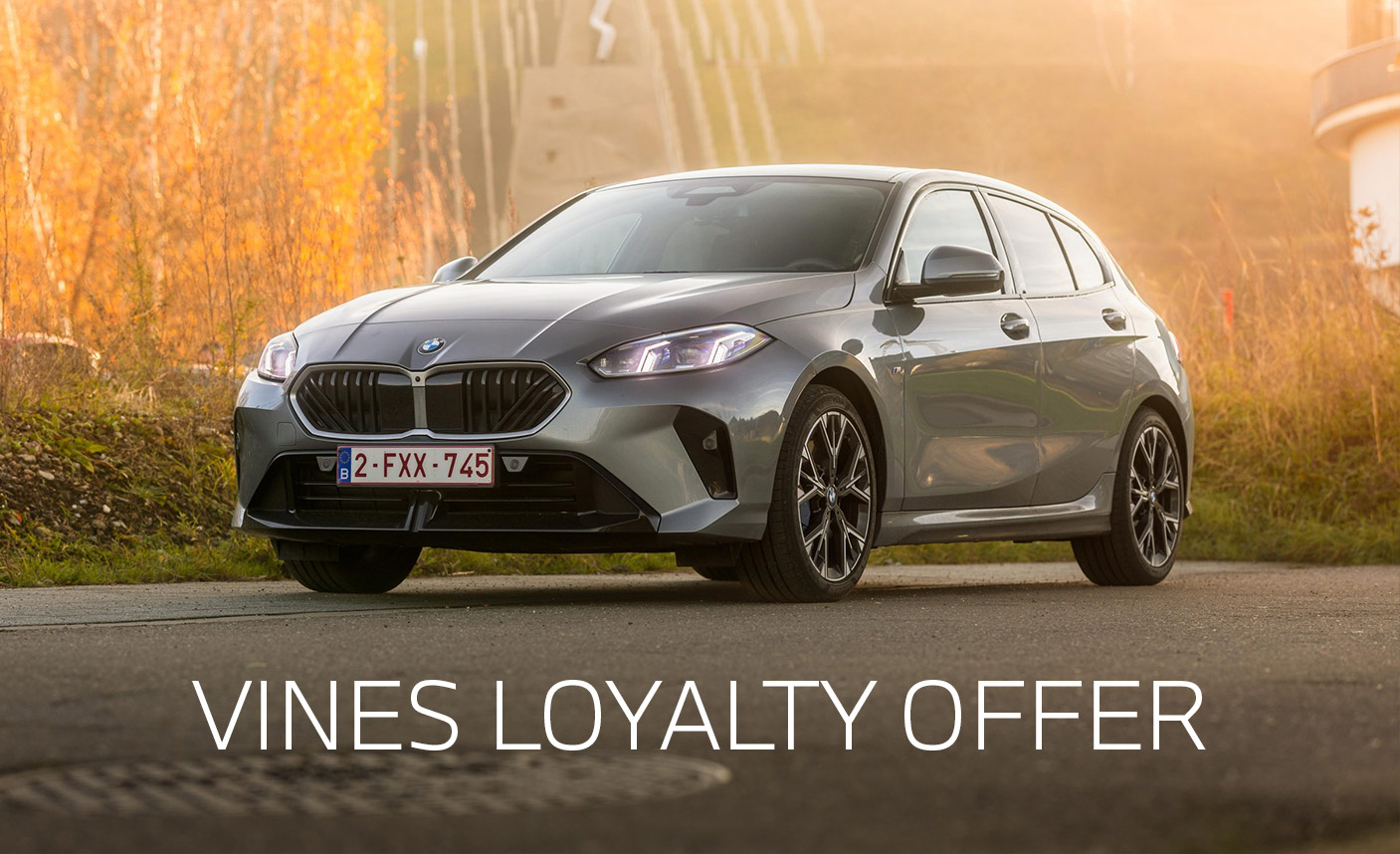 Finance example is for a BMW Select agreement for a 120 M Sport with a contract mileage of 24000 miles and excess mileage charge of 11.44p per mile. Applies for new vehicles ordered between 1 July 2025 and 30 September 2025 and registered by 31 December 2025 (subject to availability) at participating BMW Retailers. Retail customers only. *On the road cash price is based on manufacturer's recommended retail price and includes 3 year BMW Retailer Warranty, BMW Emergency Service, 12 months' road fund licence, vehicle first registration fee, delivery, number plates and VAT. ^Optional final payment and option to purchase fee not payable if you opt to return the vehicle at the end of the agreement (vehicle condition, excess mileage and other charges may be payable). Finance available subject to credit acceptance to UK residents aged 18 or over. Guarantees and indemnities may be required. Terms and conditions apply. Offer may be varied, withdrawn or extended at any time. 'BMW Select' is a form of hire-purchase agreement provided by BMW Financial Services (GB) Limited, Summit ONE, Summit Avenue, Farnborough, Hampshire GU14 0FB. You will have a 14 day statutory right to withdraw from the agreement. Vines Limited trading as Vines introduces customers to a selected panel of lenders, which includes BMW Financial Services. We receive a fixed commission for introducing you to BMW Financial Services. We do not have any discretion to vary the interest rate or APR you pay under your finance agreement. An introduction from us does not amount to independent financial advice.
