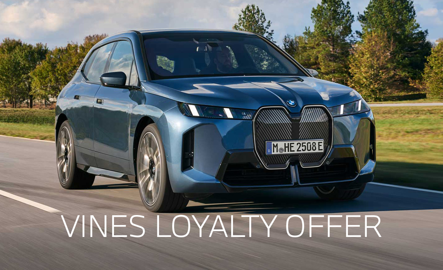 Finance example is for a BMW Select agreement for a iX xDrive45 M Sport with a contract mileage of 24000 miles and excess mileage charge of 19.69p per mile. Applies for new vehicles ordered between 1 July 2025 and 30 September 2025 and registered by 31 December 2025 (subject to availability) at participating BMW Retailers. Retail customers only. *On the road cash price is based on manufacturer's recommended retail price and includes 3 year BMW Retailer Warranty, BMW Emergency Service, 12 months' road fund licence, vehicle first registration fee, delivery, number plates and VAT. ^Optional final payment and option to purchase fee not payable if you opt to return the vehicle at the end of the agreement (vehicle condition, excess mileage and other charges may be payable). Finance available subject to credit acceptance to UK residents aged 18 or over. Guarantees and indemnities may be required. Terms and conditions apply. Offer may be varied, withdrawn or extended at any time. 'BMW Select' is a form of hire-purchase agreement provided by BMW Financial Services (GB) Limited, Summit ONE, Summit Avenue, Farnborough, Hampshire GU14 0FB. You will have a 14 day statutory right to withdraw from the agreement. Vines Limited trading as Vines introduces customers to a selected panel of lenders, which includes BMW Financial Services. We receive a fixed commission for introducing you to BMW Financial Services. We do not have any discretion to vary the interest rate or APR you pay under your finance agreement. An introduction from us does not amount to independent financial advice.